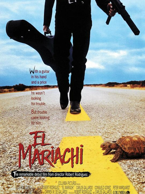 这是导演的成名之作,罗伯特自掏腰包拍了这部低成本的黑色电影,结果一炮而红。影片讲述的是一名心狠手辣的罪犯成功越狱后,来到小镇伺机找他的仇家报仇,仇家的手下只知道那个罪犯将武器藏在吉他盒子里随身携带,而从来都没有见过他本人。一名流浪的吉他手(卡洛斯•加拉尔多 Carlos Gallardo 饰)凑巧这时来到小镇谋生,于是,莫名其妙的他就被卷入了一场不知所谓的追杀中。追杀的场面被导演演绎的笑料百出,黑色幽默表现的淋漓尽致。