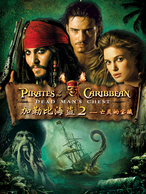 迷人的杰克(约翰尼•戴普 饰)船长又回来了,这次,他遇到了更为强大的敌人——传说中的不死人大卫•琼斯(比尔•奈伊 饰),他驾驶着让人恐惧的“飞行荷兰人”号快船,在速度与装备上,没有任何船能够超越它。杰克船长欠下琼斯一个血债,他必须赶在最后时限到来之前,找到破解的方法,否则他会永远背负血债,并且在余生永远成为琼斯的奴隶。   当然,杰克船长的好朋友威尔•特纳(奥兰多•布鲁姆 饰)也被卷入了他的坏运气当中。因为杰克,威尔和伊丽莎白(凯拉•奈特莉 饰)的婚礼被迫取消,伊丽莎白还被关进了监狱,威尔为了救她,只能去寻找杰克。   这次两个好朋友遇到了巨大神秘的海洋怪物、不友善的小岛土著、打扮华丽的占卜者戴尔玛,威尔失散多年的父亲--“拉靴带”比尔•特纳(斯特兰•斯卡斯加德)在关键时刻离奇现身,成为全局的转折点……